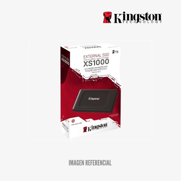 Unidad en estado sólido externa Kingston XS1000, 2TB, USB 3.2 Gen 2 Tipo-C, Velocidad de lectura: 1050 Mbps, Velocidad de escritura: 1000 Mbps.