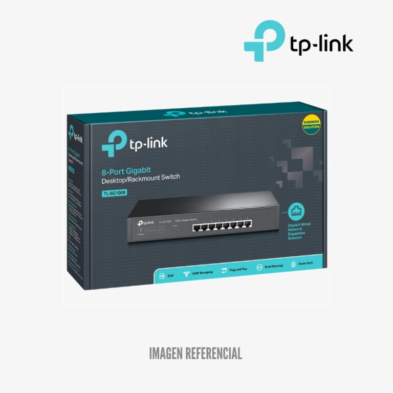 S/ 174.90 Inc. IGVEl TL-SG1008 de TP-LINK es un switch de sobremesa con 8 puertos Gigabit que le permite migrar fácilmente su red a la tecnología Gigabit Ethernet. Los 8 puertos soportan MDI/MDIX automático