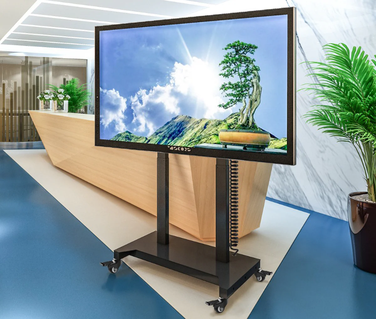 Pedestal Eléctrico Motorizado con Ruedas para TV Pantalla Interactiva 52 a 84 Pulg / VESA Max 900x600mm